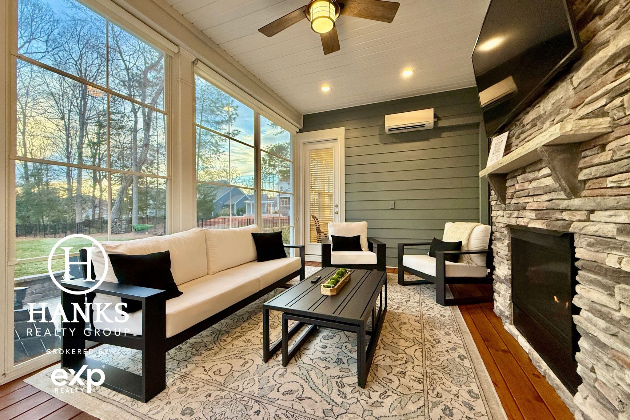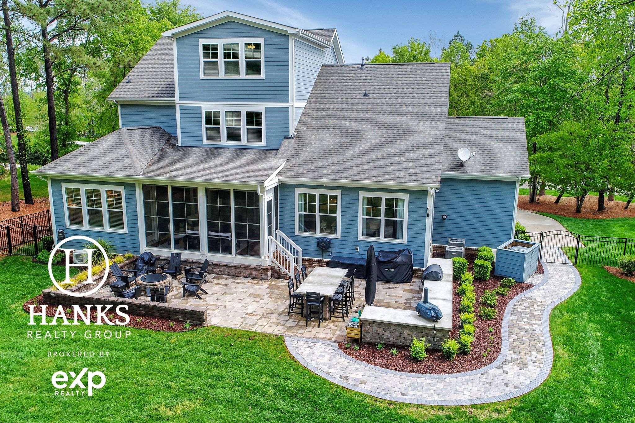 Enjoy outside w/ a full outdoor kitchen & hardscape patio w/ pizza oven, beverage fridge, gas grill, fire pit, playset, & app-controlled irrigation. 3-season room w/ EZ-Breeze windows & a Mitsubishi mini-split provides year-round comfort.