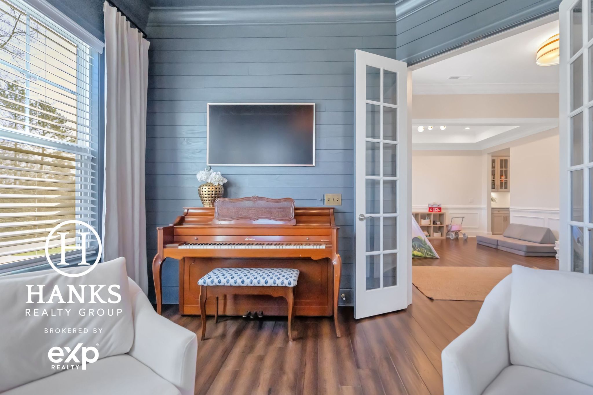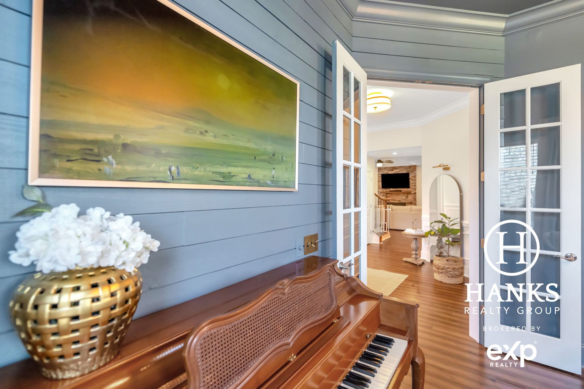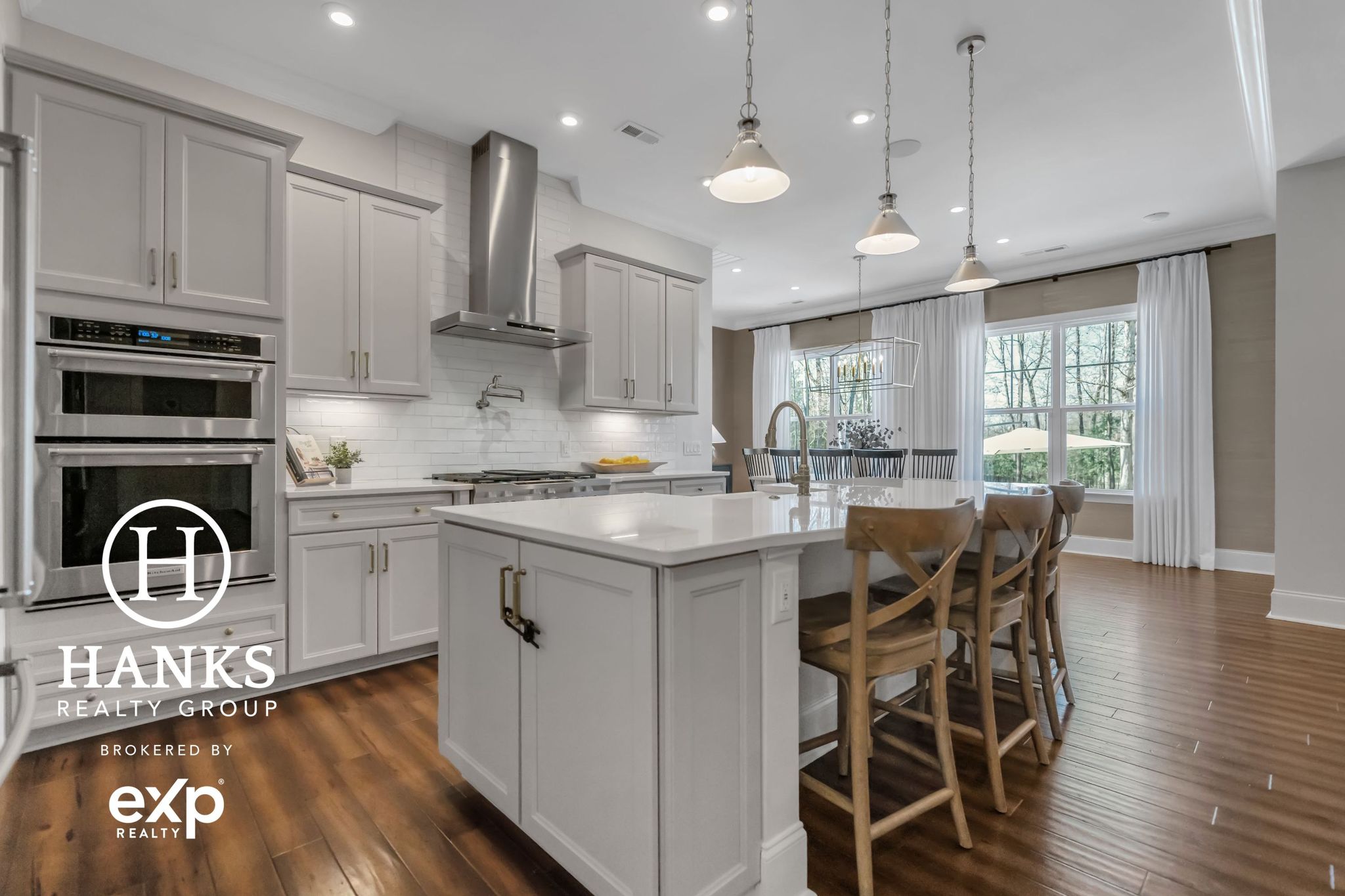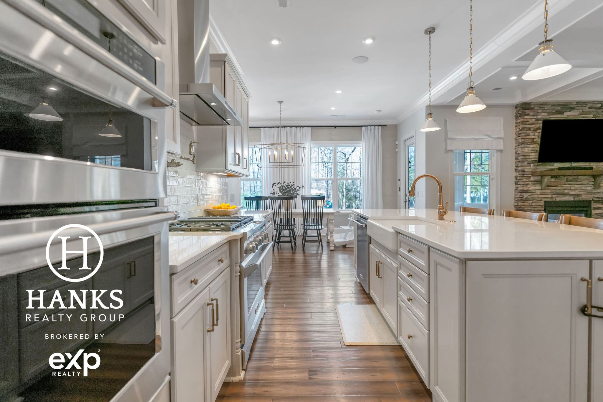 The kitchen has double Kitchen Aid ovens, fresh subway tile, & updated fixtures. Coffered ceiling, see-through fireplace, & Samsung Frame TV add warmth & character. Owner’s Suite has custom ClosetMaid system. Media room, double front porches, & real wood floors complete this thoughtfully designed home. 3 bay garage. Pre-inspected.