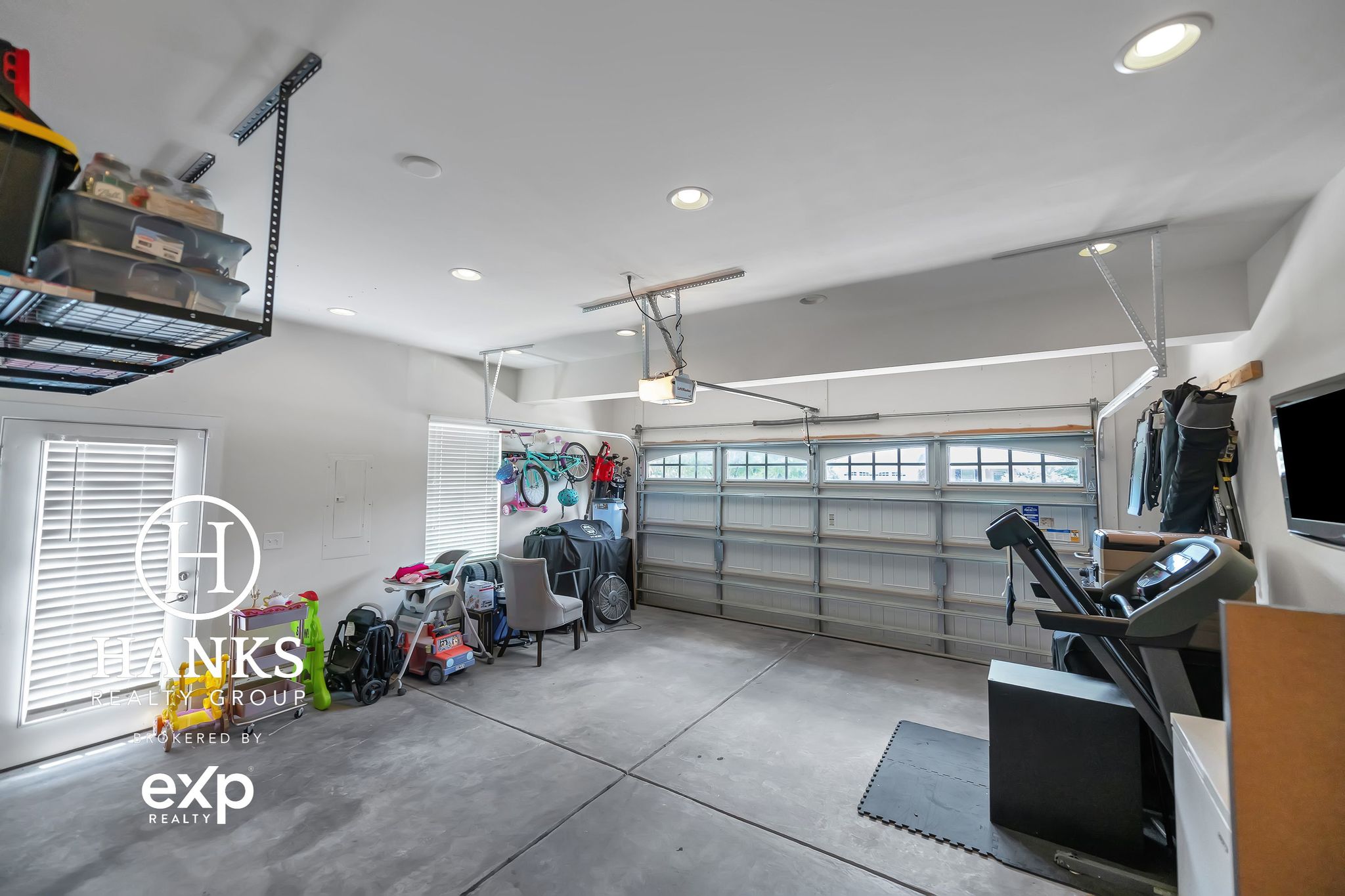 Finished garage offers recessed lighting, convenience door & window, overhead storage & exterior hideaway for trash bins or mower. Systems impress: 10-zone irrigation, low-voltage landscape lighting, security pre-wire, tankless H2O heater (’15), furnace (’15) & condenser (’22).